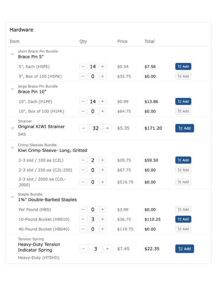 Adjust quantities, swap components, and customize your order before submitting.